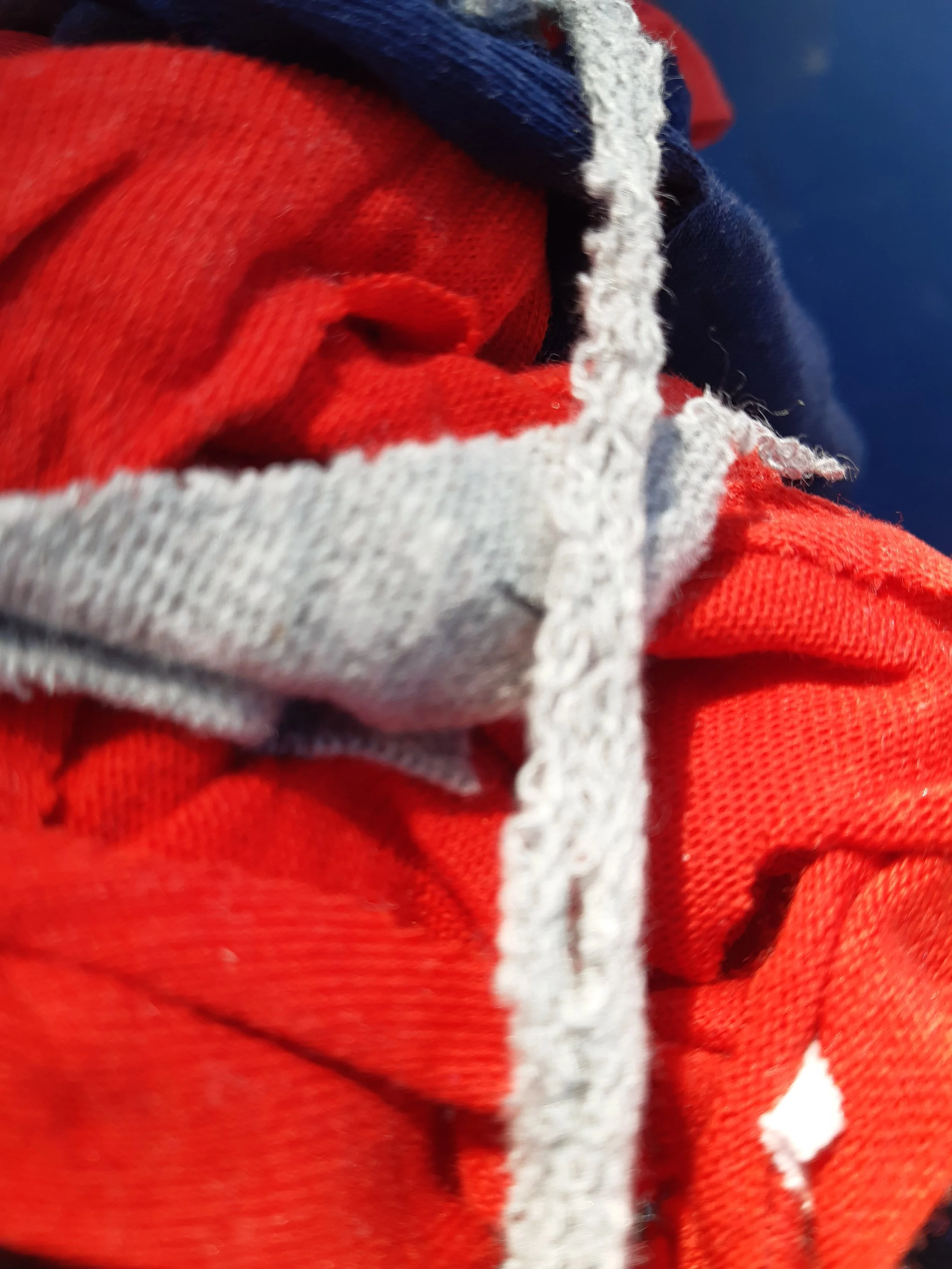 Packed in pressed bales of 400 kg to 450 kg surrounded by cords.