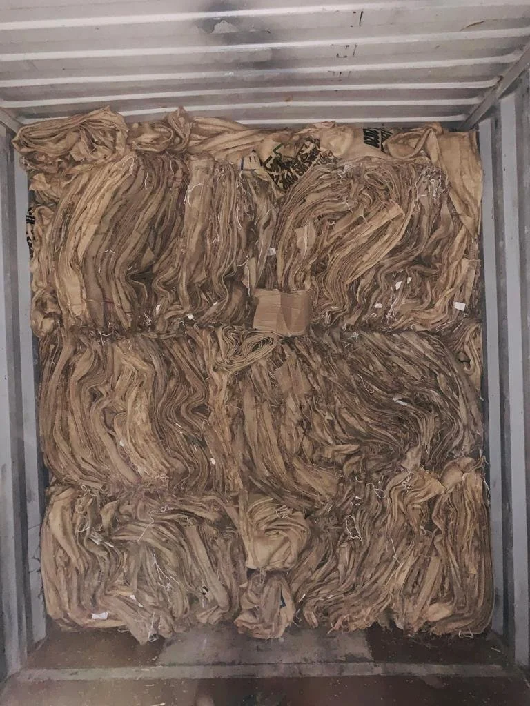 Packed in pressed bales of 400 kg to 450 kg surrounded by cords.